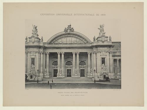 L’entrée du Grand Palais, à Paris, lors de l’Exposition universelle de 1900. Au cours du XXe siècle, la partie centrale a perdu toutes ses statues.
